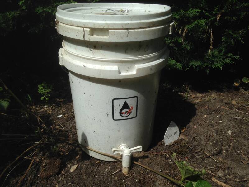 Dan nu iets over de composteer containers of emmers. Het meest simpele systeem bestaat uit een aantal groot formaat emmers. De onderste emmer heeft een dichte bodem en is voorzien van een kraantje om het percolaat af te tappen. Op de bodem van deze emmer plaats je een bloempotje waarop de tweede bak rust. Doe je dit niet dan zal de onderste emmer vollopen en zullen de wormen uiteindelijk verdrinken. De tweede emmer is voorzien van gaatjes. Het percolaat kan hierdoor sijpelen. Deze gaatjes mogen niet te groot zijn, omdat anders de wormen hierdoor kunnen kruipen en verdrinken in het percolaat. In dit tweede vat vindt de compostering plaats. Men begint met een klein laagje karton dat in snippers is gescheurd. Hier overheen wordt composteerbaar in stukjes gesneden materiaal gestrooid. Probeer hier zo veel mogelijk afwisseling in aan te brengen. Dus niet de hele bak vullen met eenzelfde soort materiaal. Probeer het ook luchtig te houden. In de beginfase doen micro-organismen hun werk. Zij zullen beginnen met het materiaal af te breken in een voor de wormen geschikt substraat. Na een week of twee gaan de wormen er bij. Laat de toren de eerste tijd ongemoeid. ga niet woelen of kijken of de wormen nog in leven zijn maar wees geduldig. Als de wormenbak is "aangeslagen" dan zal dit zichtbaar zijn doordat percolaat zich in de onderste emmer begint te verzamelen. Zorg ervoor dat nu de farm aan de gang gehouden wordt door telkens een gevarieerde hoeveelheid materiaal aan het composteervat toe te voegen. Als het geheel in evenwicht is kan per week in een kleine unit wel 2 kg materiaal worden omgezet. Als het composteren reukloos verloopt dan is dat een goed teken. Je kan last krijgen van andere insecten in of in de nabijheid van het composteervat. Fruitvliegjes komen bijna altijd voor. Het composteren komt hierdoor echter niet in gevaar. Als het niet goed gaat in de bak, kan men dit meestal zien omdat wormen de bak willen verlaten. Ze kruipen dan tegen de wand op om te ontsnappen. Er kunnen een aantal oorzaken zijn: