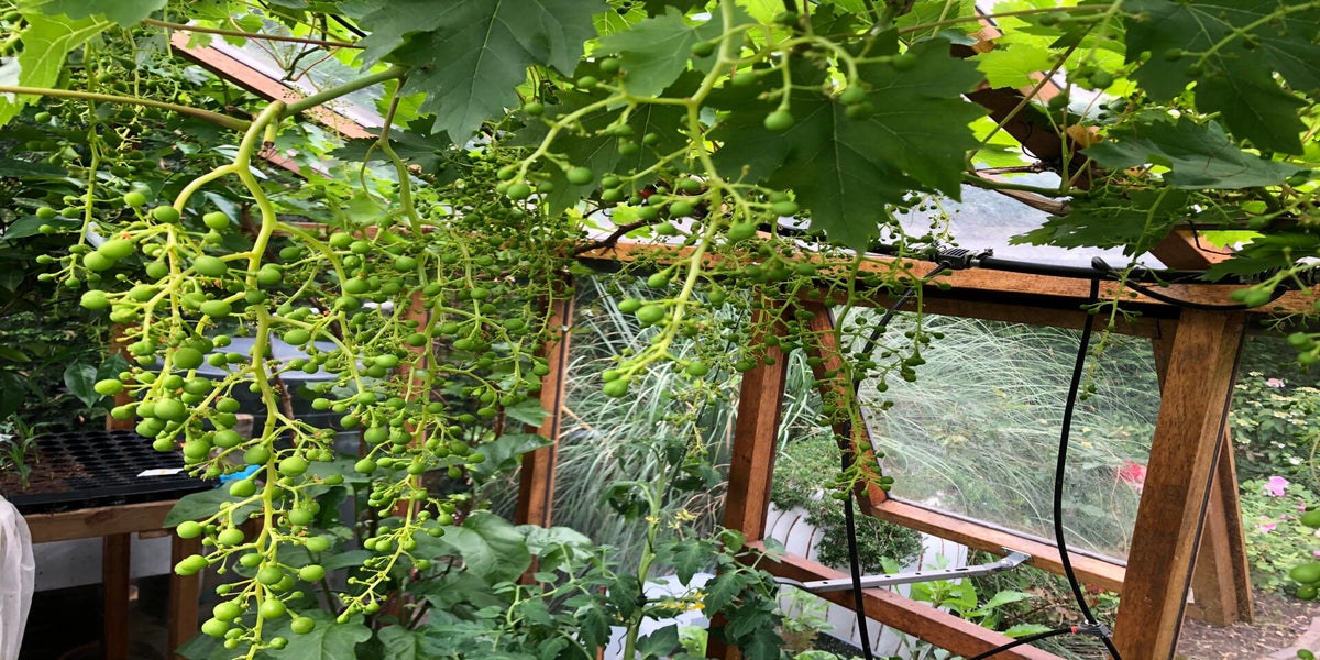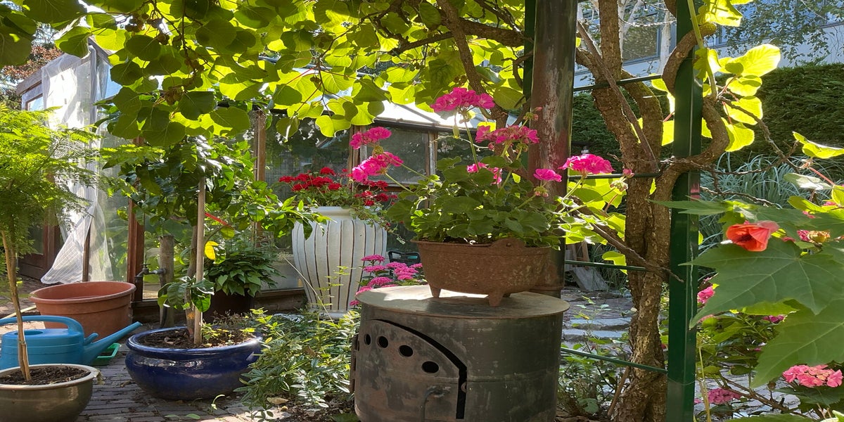 In het voorjaar kweek ik al het pootgoed op voor de biotuin en voor in de borders van de tuin rond het huis. In de kas staat ook een Cabernet sauvignon druif, die rijk draagt, heerlijk smaakt en een prima wijn oplevert. Sinds vorig jaar is er een vruchtdragende (navel) sinaasappel. De sinaasappel is moeilijker te kweken dan de mandarijn. De sinaasappel levert 5 a 6 vruchten. Bij de mandarijnen is een oogst van 30 stuks geen uitzondering.